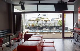 人の往来が激しい大阪屈指の観光地・道頓堀に開放的なルーフトップテラスを備えたラウンジです。